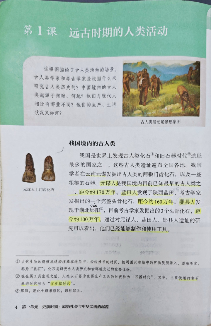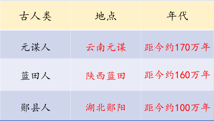 第一节 我国境内的古人类 一、古人类代表 (地位:元谋人是我国...